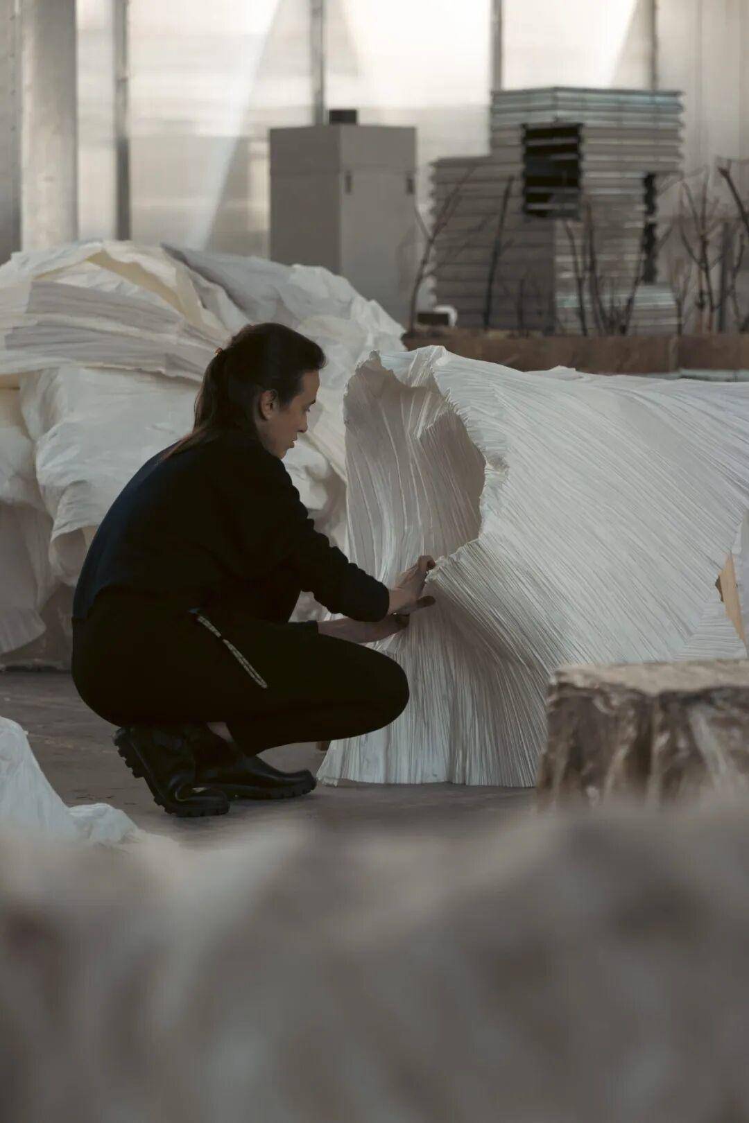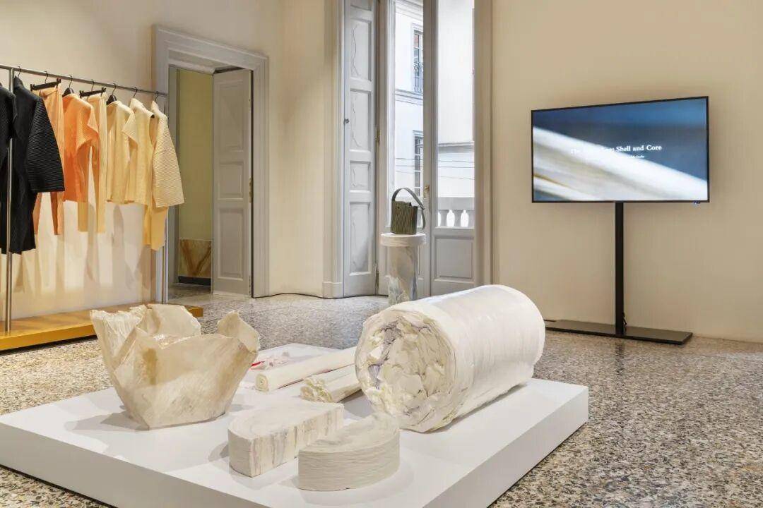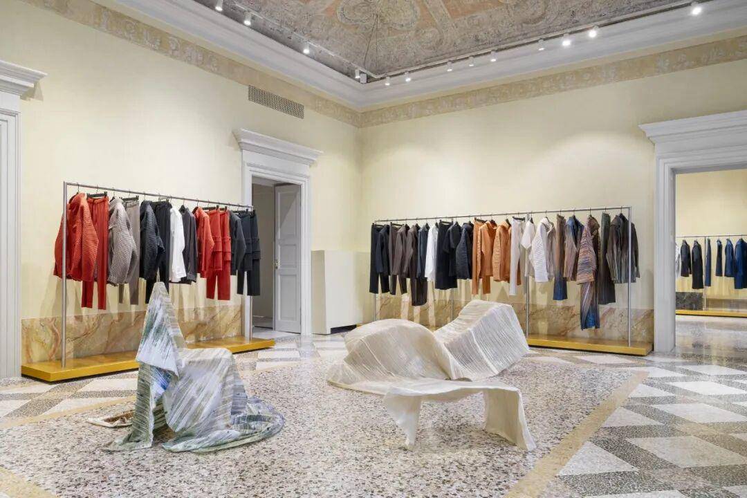 在三宅一生的米兰旗舰店里,一场关于纸的展览正在发生。不是纸做的衣服,是纸本身变成了椅子、长凳、雕塑和灯具。
