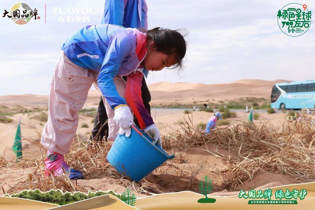 黄华坤董事长打破传统公益模式,创新破局,让公益从“企业单向投入”走向“全民共创”。首创“每卖出一套沙发,捐种一棵树”消费联动机制,将日常消费与生态保护紧密绑定,降低全民参与环保门槛。同时,专项开发“左右家居种树植心”小程序,让消费者一键认领树苗、线上参与公益植树,实现“消费即公益”。连续10年,邀请经销商、用户及其家人、媒体、体育冠军等超1000人深入治沙一线,其中不乏少年儿童。我们希望以亲身沉浸式体验,让环保理念从认知走向内化;从少年童心出发,深植绿色生态信念,让“种树植心”深入人心,凝聚起全社会守护生态的强大合力。