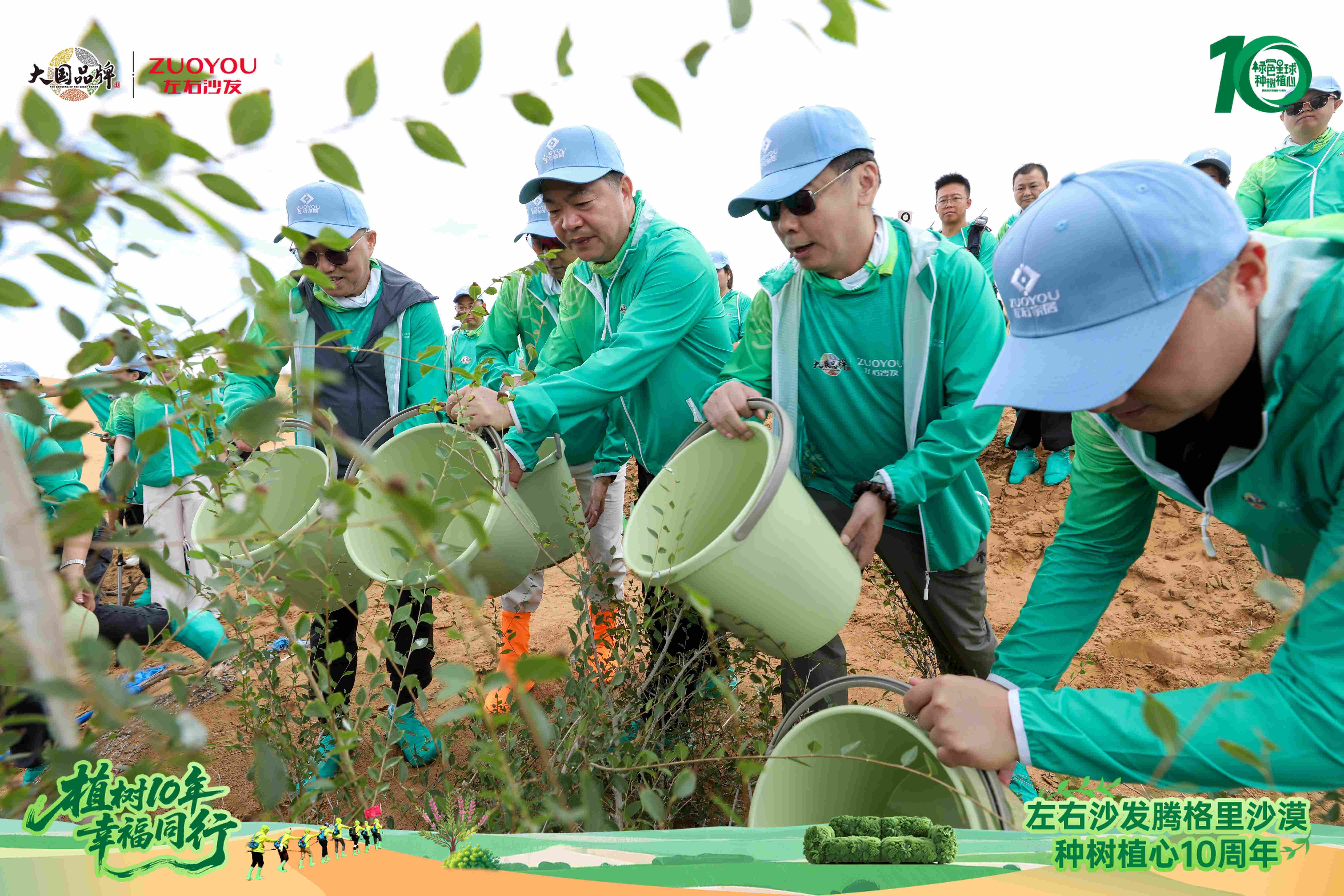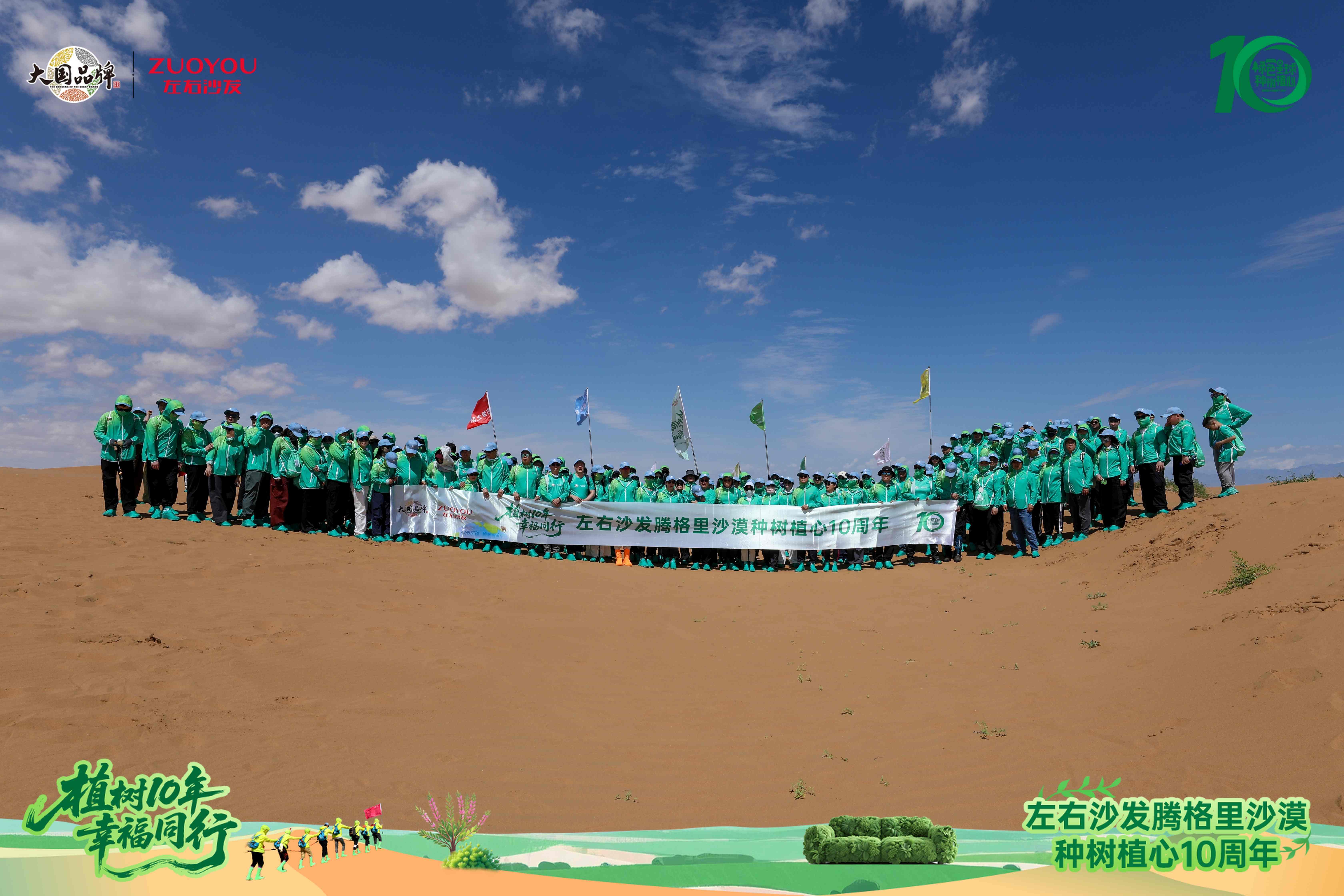 左右沙发腾格里沙漠种树植心10周年合影