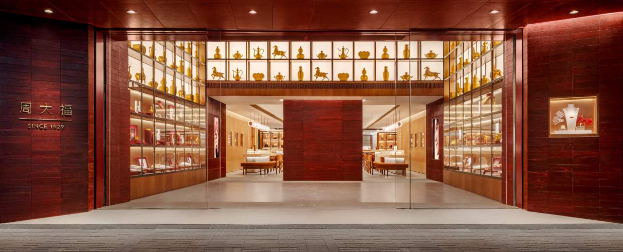 周大福珠宝全球首家旗舰店坐落于香港尖沙咀广东道。旗舰店特设品牌典藏馆,呈现周大福珠宝自1929年起近百年的发展历程,同时展示其携手权威机构对锤揲、花丝等古法黄金工艺的研究。旗舰店内划分成不同区域,展示“传福”“传喜”“周大福故宫”及“传承”系列等多个经典产品系列。门店中心则是品牌首次在香港门店中引入的互动体验专区Charm Your Path。旗舰店同时汇聚高级珠宝系列、HEARTS ON FIRE多个系列,特设婚嫁区域和VIP专区。周大福珠宝表示,通过融合品牌历史、空间美学与互动体验,全球首家旗舰店不仅重塑奢华零售体验,也为中国奢侈品牌在国际舞台上树立全新标准。