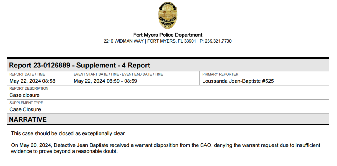 据知情人透露,该女性曾于2023年12月在当地警局报案。2024年5月20日,当地州检察官办公室因“证据不足”驳回逮捕令申请,警方于同年5月22日正式结案。此后,该女性转以民事诉讼继续维权。